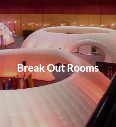The large conference cubes house anything from 30 to 400 people and can be laid out for dining or conferences